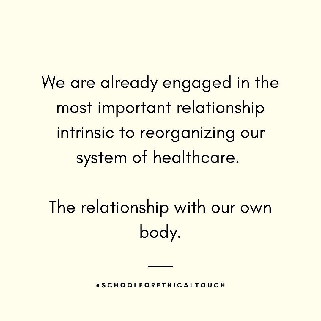 We have just launched The School For Ethical Touch, a project spanning our respective homes in the US and the UK that will be a space for inquiry, education, advocacy and dialogue exploring models of healthcare - most especially hands-on care - that explicitly center the embodied agency of the person on the receiving end as their guiding principle.